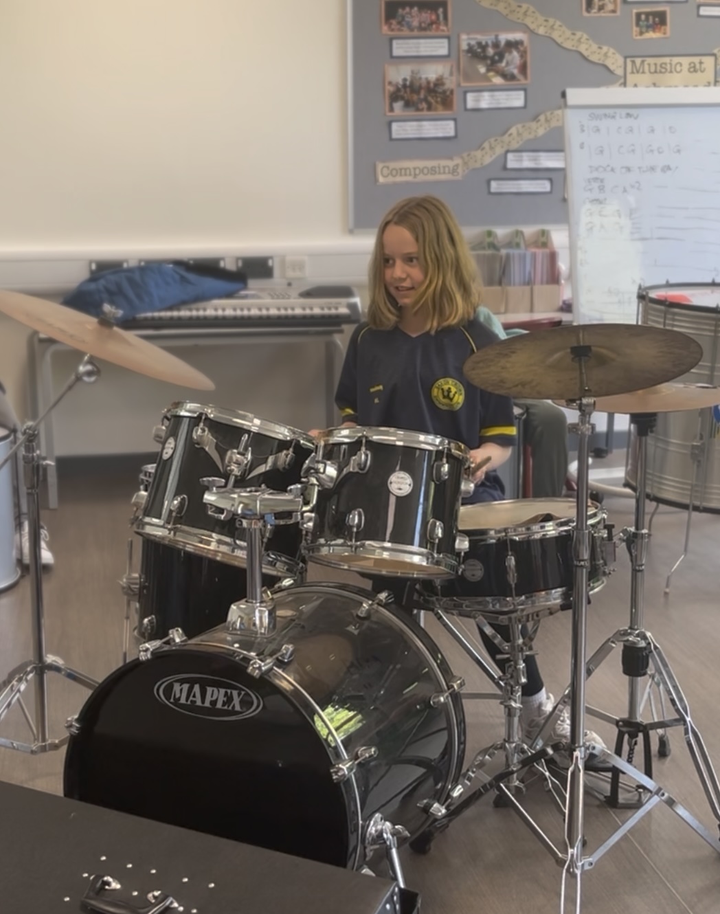 Andres, our drumming teacher, taught us all about the history of the drum kit. We learnt about the different instruments that make up the full drum kit and what affects the sounds they make. Of course, the best bit was having a go ourselves!